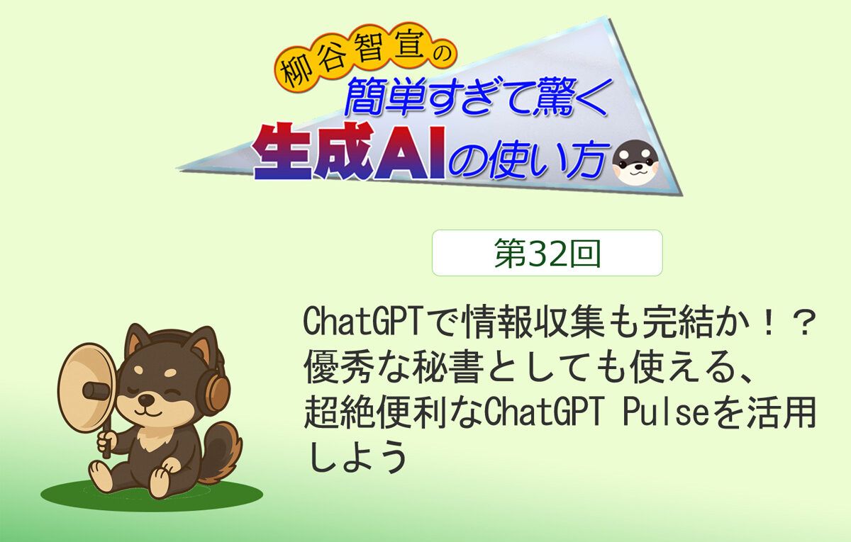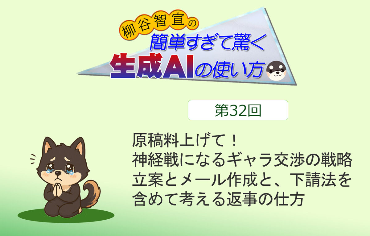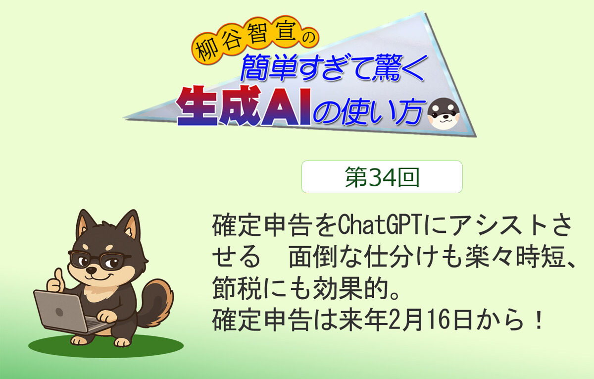 新着記事News 10月末にアップデートしたAIアシスタント「NotebookLM」がさらにパワーアップ!その実力をチェック 2025.11.11 執筆・編集 確定申告をChatGPTにアシストさせる 面倒な仕分けも楽々時短、節税にも効果的。確定申告は来年2月16日から! 2025.11.07 執筆・編集 第三次ブラウザ戦争勃発! – Perplexity、OpenAI、Gensparkが先行、Chrome、Edgeが追撃 2025.11.05 執筆・編集 AI GMO お酒 デジタル 企業コンテンツ 柳谷智宣ITライターProfile1972年生まれ、東京育ち。ITやビジネスといったカテゴリーで執筆しているライターです。キャリアは27年目で、雑紙やムック、単行本、新聞といった紙媒体から、ウェブ記事、メールマガジン、プレスリリースなども手掛けています。現在は、執筆だけでなく、企画提案から執筆・編集までを行っております。主に一般ビジネスユーザーをターゲットに、易しく解説する記事が多いですが、エンタープライズ向けの記事やメーカーや企業のウェブサイトのコンテンツ制作も請け負っています。可能な限り、様々な案件に対応できますので、まずは打診いただけると幸いです。プロフィールを読むFacebookContact