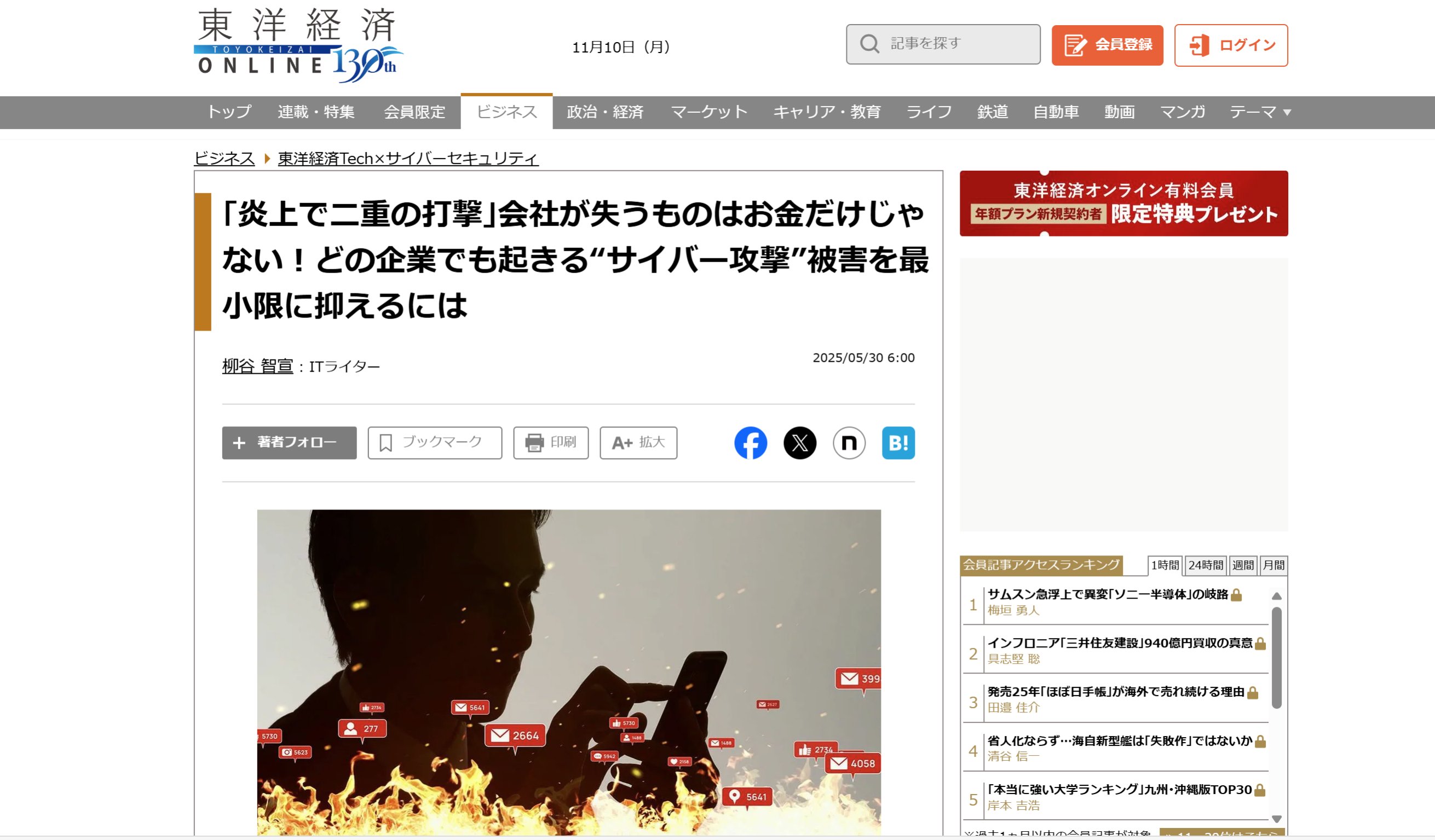 「炎上で二重の打撃」会社が失うものはお金だけじゃない!どの企業でも起きる“サイバー攻撃”被害を最小限に抑えるには 2025.05.30 執筆・編集 mail@yanagiya.biz ITライター柳谷智宣