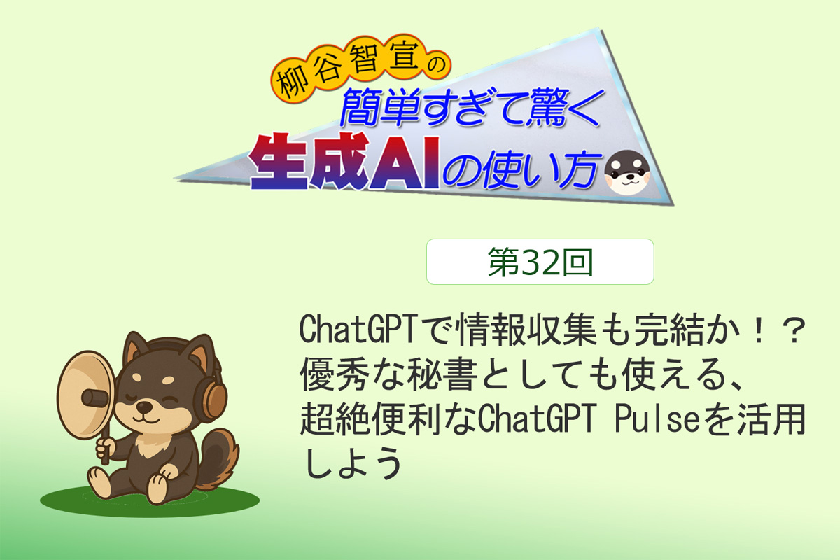 ChatGPTで情報収集も完結か!? 優秀な秘書としても使える、超絶便利なChatGPT Pulseを活用しよう 2025.10.24 執筆・編集 mail@yanagiya.biz ITライター柳谷智宣
