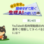 YouTubeでの情報収集や学習は便利ですが、動画が長時間にわたる場合、視聴に時間がかかるのが課題です。GoogleのAIリサーチアシスタント「NotebookLM」は、YouTube動画のURLを読み込ませるだけで、自動で文字起こしテキストをインポートし、内容の概要を生成してくれます。これにより、動画を見なくても内容を素早くテキストで把握でき、時間効率(タイパ)を高められます。