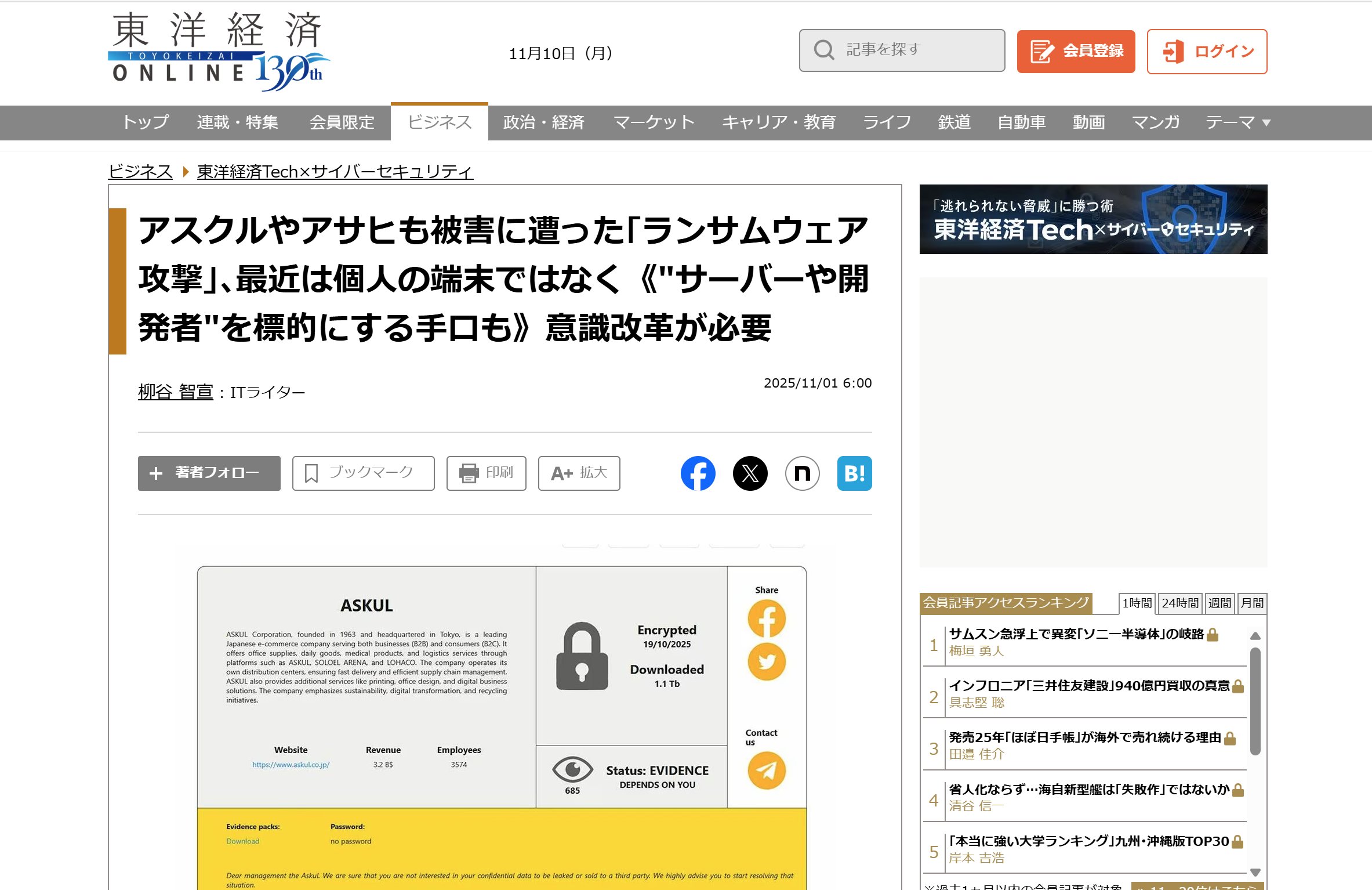 アスクルやアサヒなどの大企業がランサムウェア攻撃の被害に遭い、業務に深刻な影響が出ています。従来の「PCがウイルスに感染する」というイメージは古く、現代の攻撃者は企業の心臓部を狙っています。個人の端末ではなく、被害が甚大になるサーバーや仮想基盤そのものを標的にする手口が主流です。